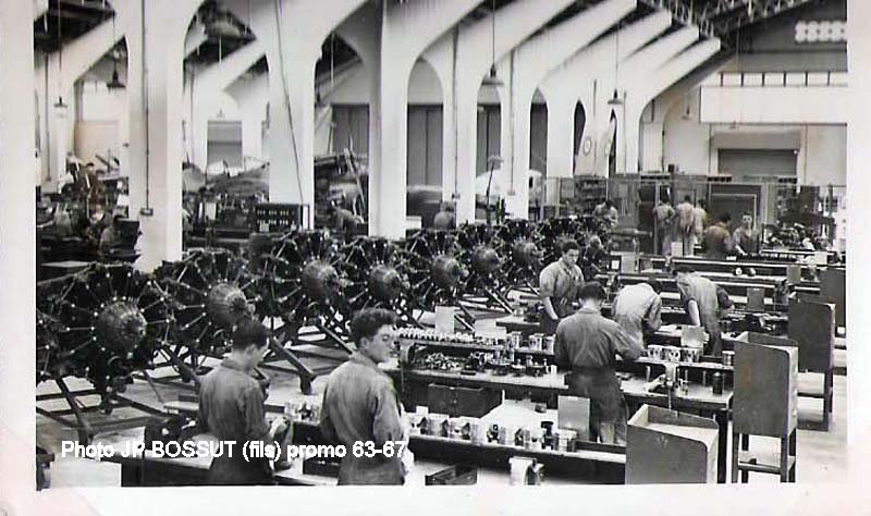 Atelier moteurs en 1952. Alignements de moteurs Pratt & Whitney "Twin Wasp" R-1830 |
